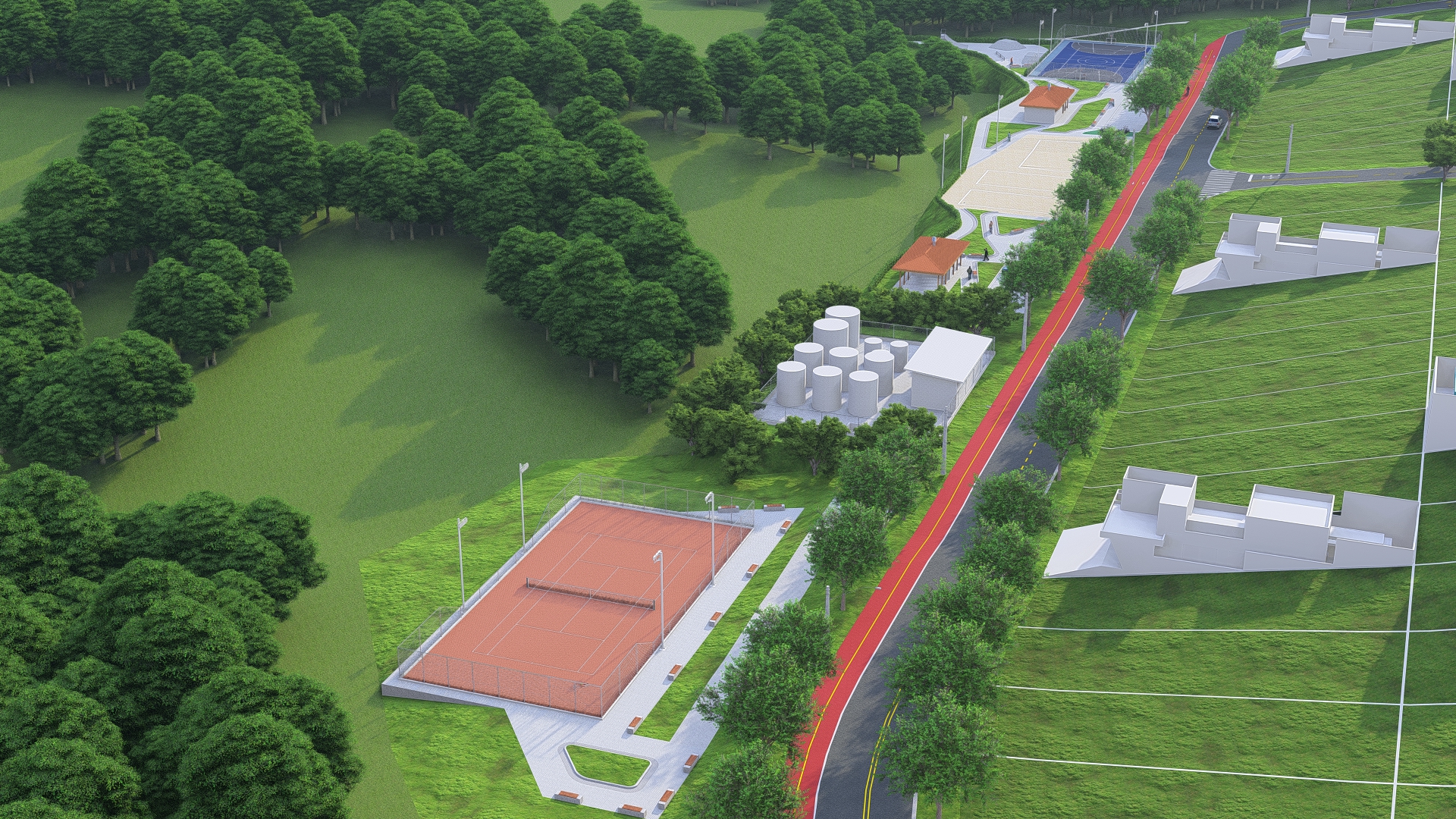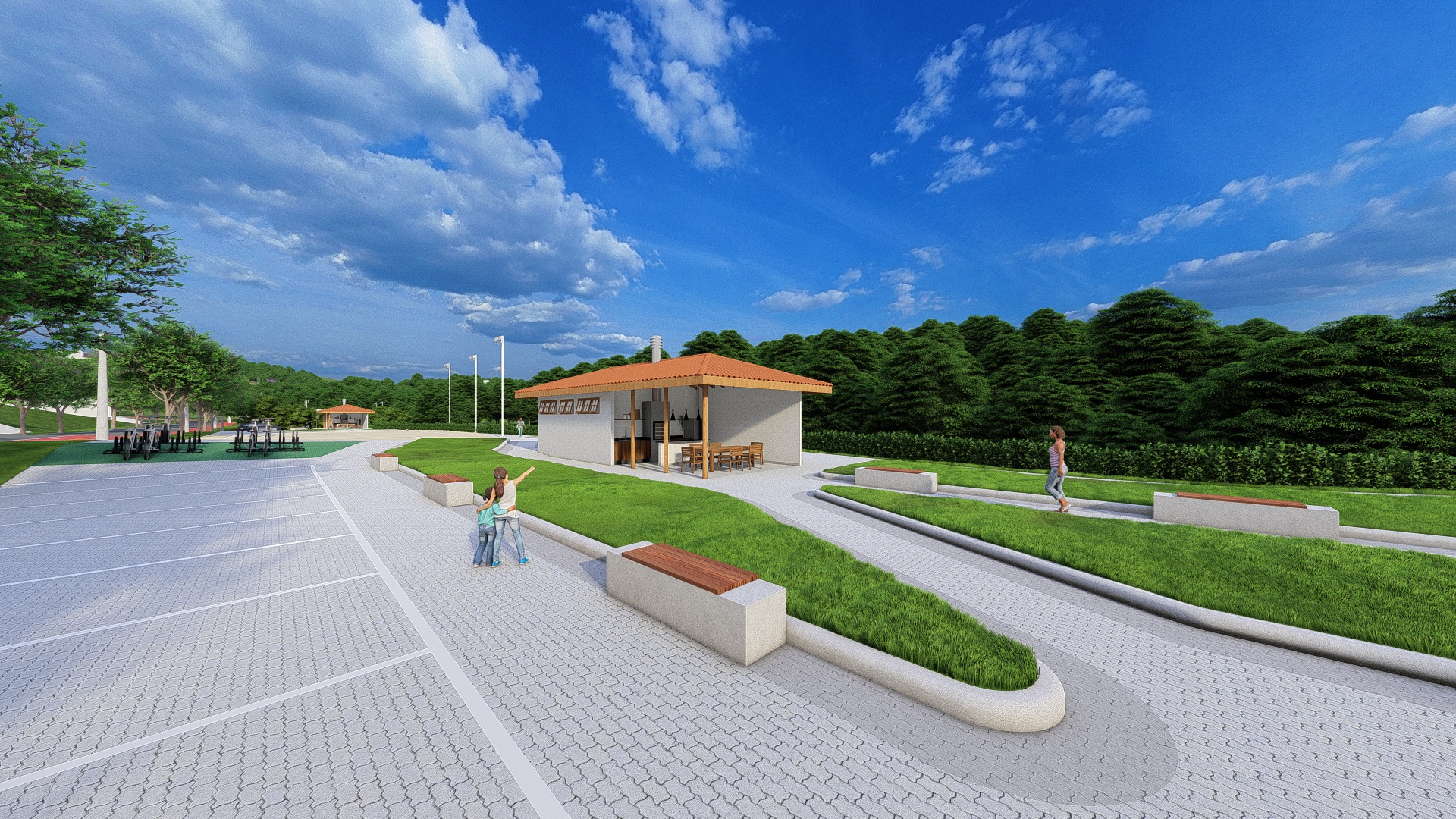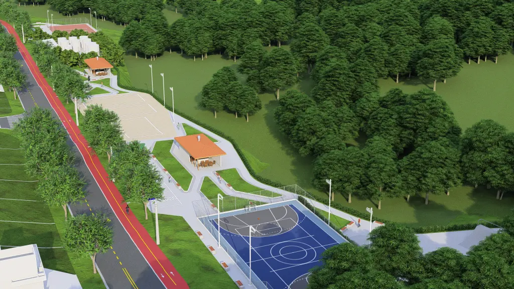 O desenho urbano valoriza a experiência ao ar livre: pistas de caminhada, quadras esportivas, piscina, espaço pet, playground, academia, salões e quiosques foram posicionados de forma estratégica para convivência e conforto, sem abrir mão da estética e da funcionalidade.